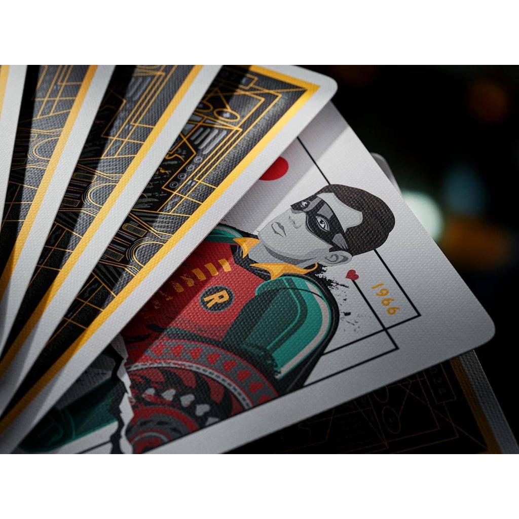 Utforsk en Gotham-inspirert kortopplevelse med Batman 85th Anniversary Playing Cards fra Theory11, levert av Cardshouse. Dette settet hedrer over åtte tiår med den mørke ridderen gjennom en eksklusiv emballasje i svart, gult og sølv, komplett med foil-detaljer og presis embossing som fanger bokstavens signaturømhet. Esken bærer også det offisielle Gotham City-seglet for å understreke autentisiteten. Inni finner du helt tilpasset kunst som feirer Batmans mest ikoniske øyeblikk, hans lojale sidekicks og den legendariske rogues’ gallery – samt hyllester til skuespillerne som har portrettert helten gjennom årene. Enten du spiller med venner eller samler på unike kortsett, bringer dette settet en cinematic Gotham-atmosfære til spillkvelden og løfter enhver kortspillopplevelse.