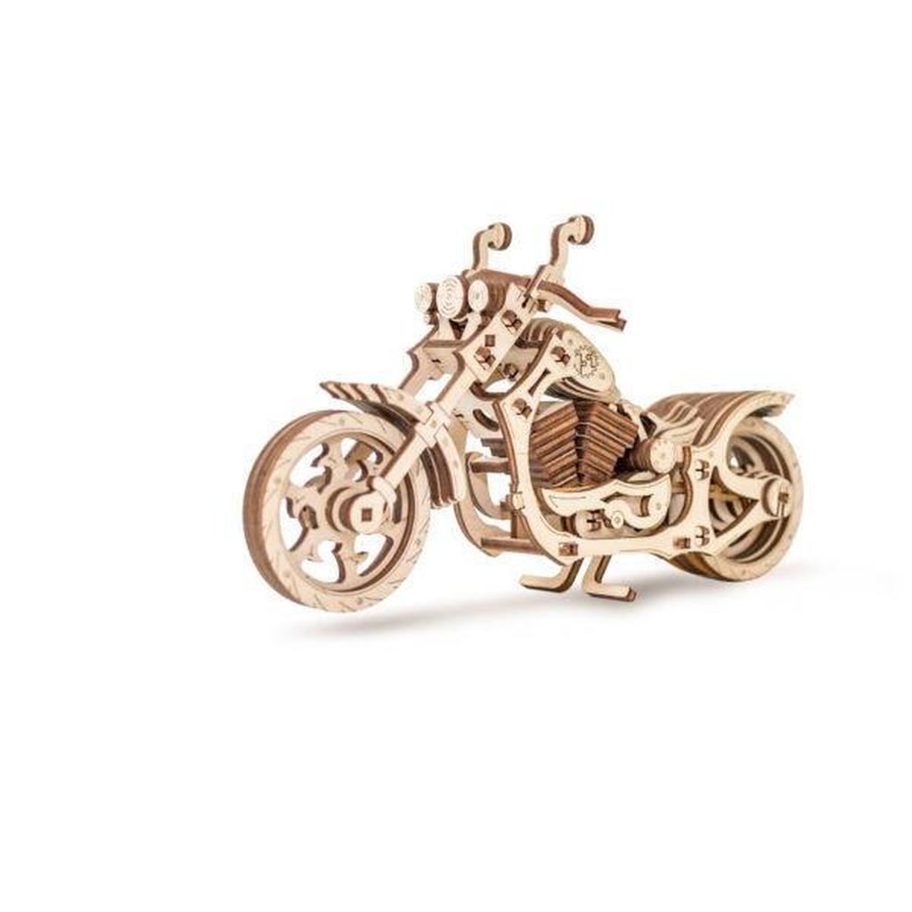 CRUISER fra Eco-Wood-Art er et kompakt tresett som forener moro, læring og dekor. Dette mekaniske 3D-puslespillet lar deg konstruere en ikonisk cruiser-motorsykkel i miljøvennlig treverk, drevet av en enkel gummibåndsmekanisme som gir bevegelse ved trekk tilbake og slipp. Delene laserklippes for presise passformer og krever ingen lim, noe som gjør monteringen ren og tilfredsstillende – ideelt for både nybegynnere og erfarne modellbyggere. Når den er komplett, står den som et stilfullt innendørs display og demonstrerer prinsippene for kraft og bevegelse. Eco-Wood-Art legger vekt på bærekraftige materialer og nøye utførelse, slik at settet blir mer enn en morsom utfordring: et varig, dekorativt stykke. Dette passer naturlig inn i modellbyggingsmiljøet og fungerer som en inspirerende gave til den som elsker praktisk læring og kreativt håndverk.