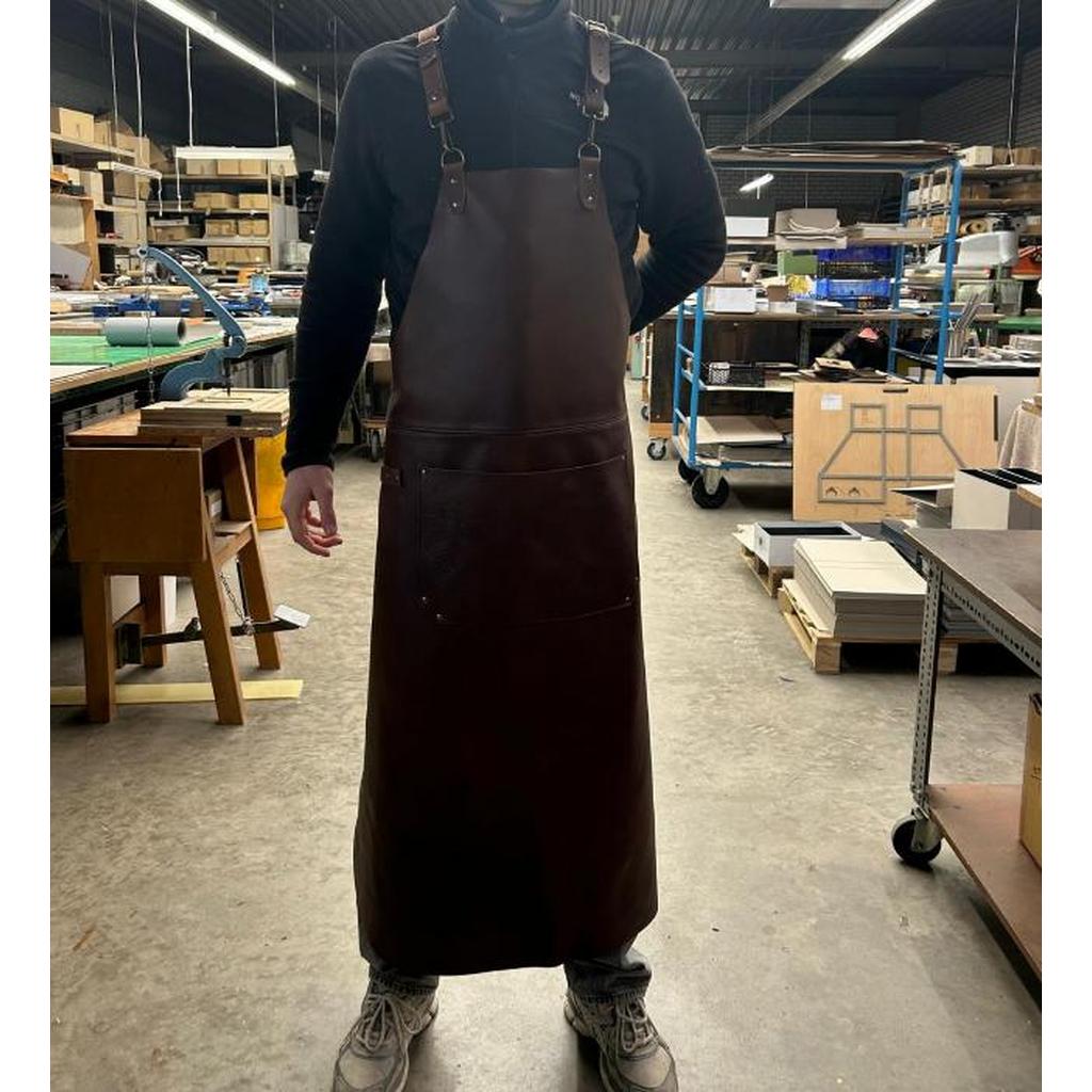Forkle i kraftig, førsteklasses italiensk skinn fra Stalwart Crafts — håndlaget i Nederland for lang levetid og praktisk bruk. Dette er en spesialvariant som er både ekstra bred (XL‑passform) og ekstra lang (ca 30 cm nedenfor knærne). Perfekt beskyttelse for profesjonelle og hjemmebrukere med romslig kroppsfasong eller behov for ekstra beskyttelse i lengden. Designet med komfortable kryssremmer, flere justeringspunkter og en stor frontlomme gjør dette forkleet velegnet for grill, verksted, kjøkken eller håndverk.