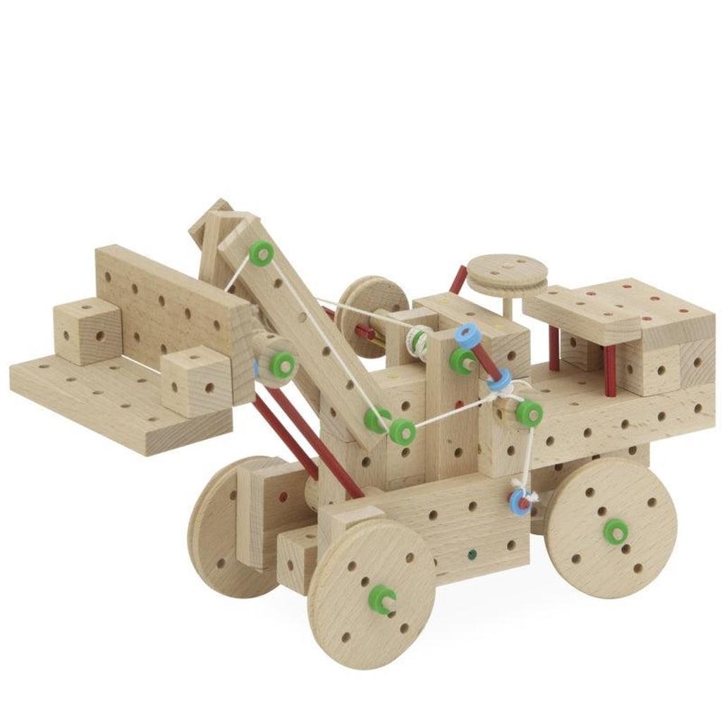 Explorer E407 er et robust byggesett fra Matador, et anerkjent østerriksk merke kjent for kvalitet og lang levetid. Settets 100% østerriksk treverk er produsert og laget i Østerrike, og det er egnet for barn fra 5 år som ønsker å bygge og utforske. Med 407 deler som bygger videre på E318, kan man skape funksjonelle modeller ved hjelp av hammer og tang. Settet leveres med en veiledning som gir 82 byggidéer for kreativ lek.