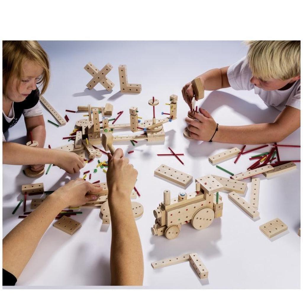 Explorer EXL fra Matador er et robust byggesett i naturlig tre, helt produsert i Østerrike. Dette settet er designet for barn fra 5 år og oppover, og tilbyr trygg og lærerik bygging som utvikler fin- og grovmotorikk, problemløsning og romforståelse. Med 902 deler og medfølgende verktøy gir det rikelig rom for kreative modeller og varierte prosjekter, samtidig som det gir en viktig forståelse av treverk og håndverk. Matador-kvaliteten er kjent for sin holdbarhet, og Explorer EXL kombinerer tradisjonell håndverkstradisjon med morsomme byggemuligheter.