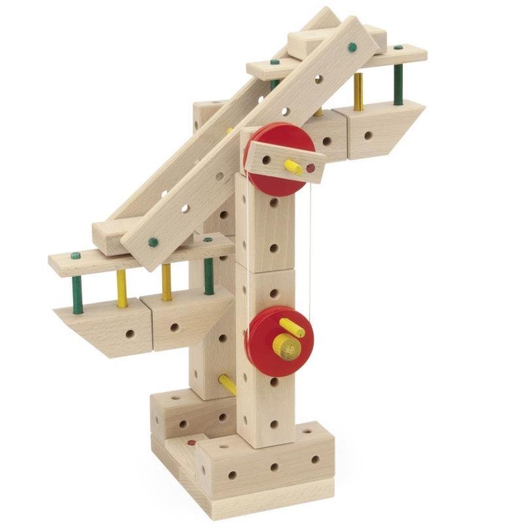 Maker M263 er et komplett og robust byggesett fra Matador, ideelt for barn fra 3 år og oppover. Settet består av 263 deler laget av 100% østerriksk bjørketre og er 100% Made in Austria, noe som gir lang holdbarhet og trygg lek. Innholdet inkluderer alle deler fra M175 pluss 88 ekstra deler, samt hammer, tang og kile. Med 93 byggidéer i en praktisk veiledning får barnet utallige muligheter til å konstruere modeller som Formel 1-biler, flyplasser og karuseller, og utvikle motoriske ferdigheter gjennom lek.