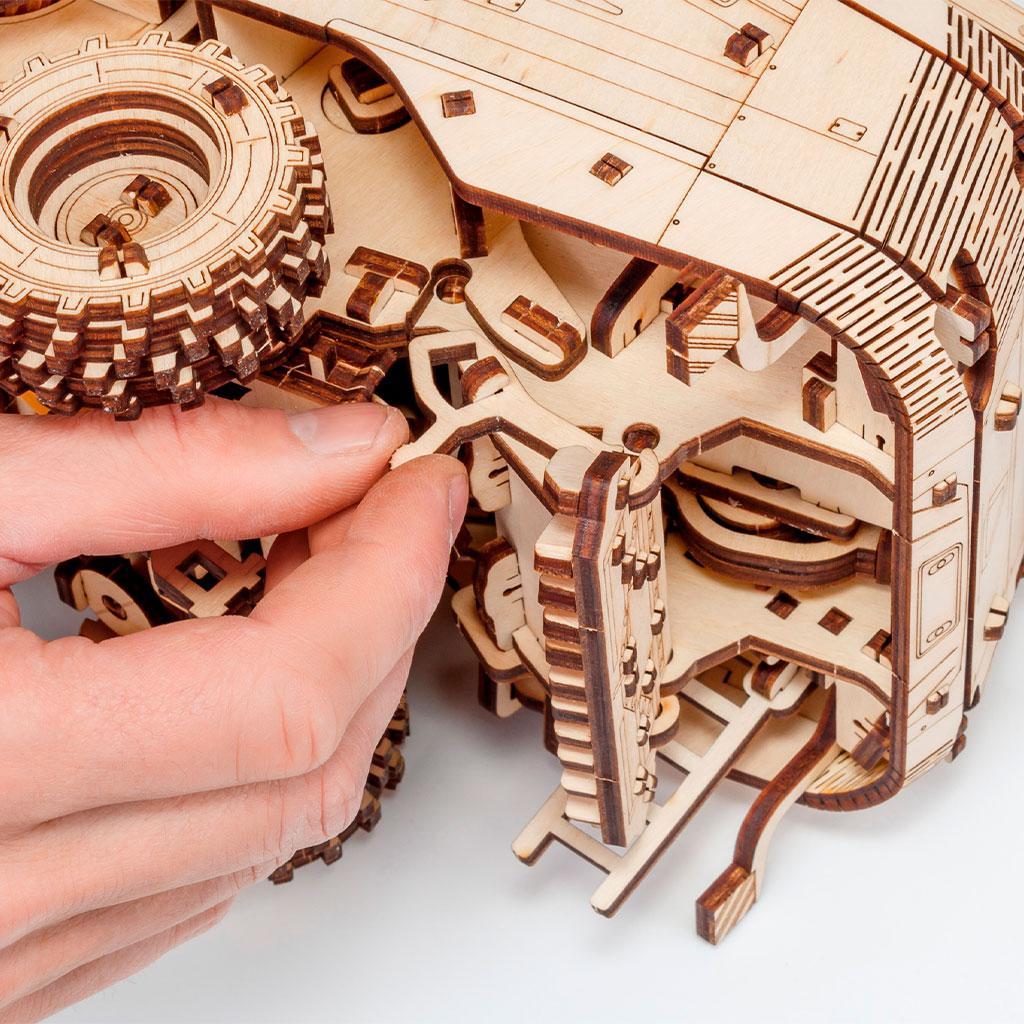 864 deler i eco-vennlig berkenmultiplex – Presist kappede brikker som gir en robust modell med naturtro trestruktur og langvarig holdbarhet.